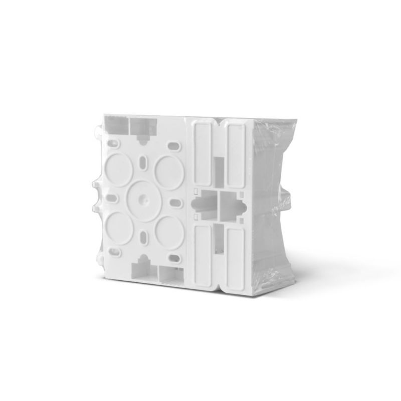 Moduł puszki natynkowej VIDEX BINERA w kolorze białym (VF-BNMB2-W) przeznaczony jest do zewnętrznego montażu elementów elektrycznych. Produkt ten sprawdza się w miejscach, gdzie montaż wpuszczany jest niepraktyczny, np. w ścianach betonowych lub ceglanych. Moduł puszki wykonany jest z poliwęglanu, co zapewnia wysoką odporność na uderzenia. Stopień ochrony IP20 pozwala na stosowanie produktu wyłącznie w suchych pomieszczeniach.