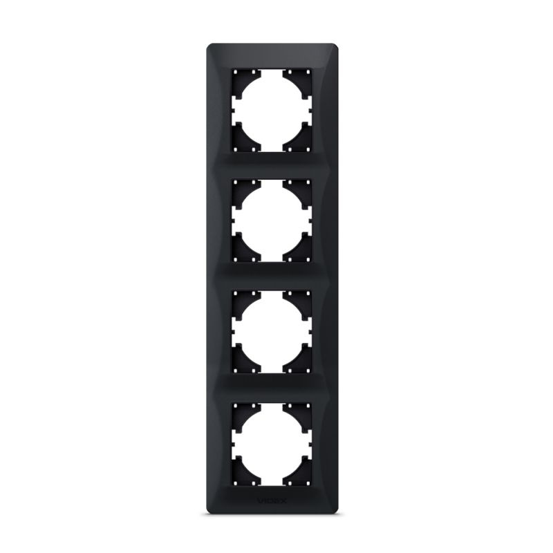 - Ramka VIDEX BINERA 4-krotna pionowa w kolorze czarny grafit, montaż podtynkowy, klasa szczelności IP20, trwała i estetyczna konstrukcja do nowoczesnych wnętrz.