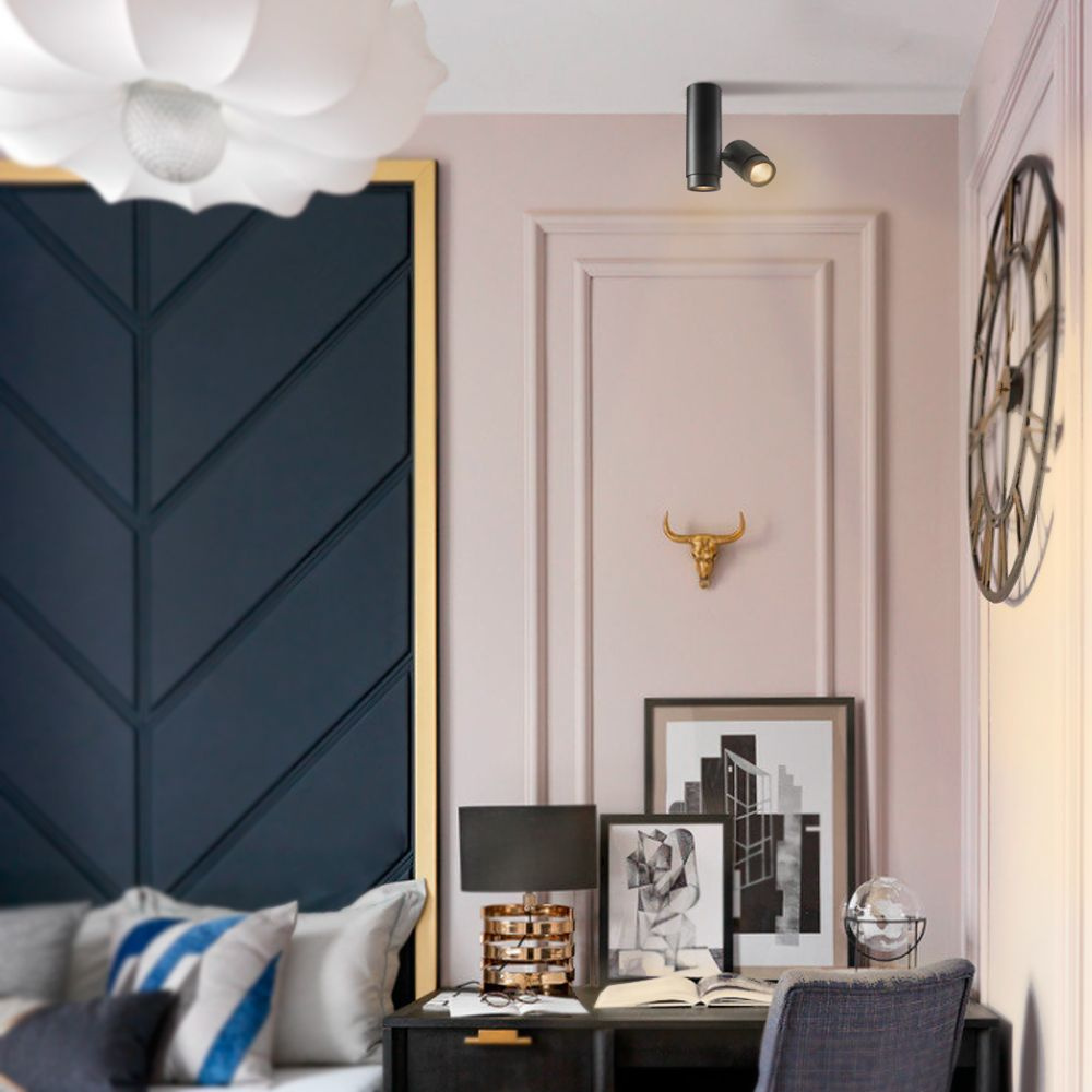 - Dekoracyjna oprawa wewnętrzna przeznaczona jest do oświetlenia nowoczesnych apartamentów, barów, restauracji, kawiarni itp. Doskonale sprawdzi się w loggiach i korytarzach, a także jako wydzielone strefy w dużych pomieszczeniach. Korpus lampy wykonany jest z aluminium – lekkiego i wytrzymałego metalu, odpornego na korozję. Powierzchnia klosza pokryta jest matową farbą o piaskowej fakturze, odporną na drobne zarysowania. W zależności od rodzaju zastosowanych lamp, lampa ta może być stosowana zarówno do oświetlenia ogólnego pomieszczeń, jak i do oświetlenia akcentującego poszczególne strefy wnętrza. Składa się z dwóch części, z których główna obraca się wokół własnej osi, a część pomocnicza w pionie. Pozwala to na skierowanie światła na żądany obszar. Oprawy z wymiennym źródłem światła mają swoje zalety, takie jak brak konieczności wymiany całej oprawy w przypadku awarii żarówki. Trzonek: GU10 x2