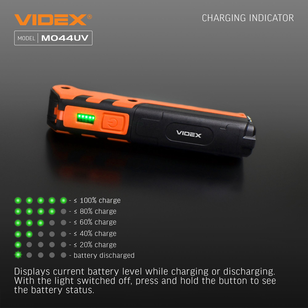 - Latarka VIDEX 5W + COB 10W 400lm z zasięgiem 60m działa do 39h na akumulatorze 2200mAh. Ładowanie USB-C (3,5 h), wskaźnik 5-poziomowy, ściemnianie, magnetyczna podstawa.