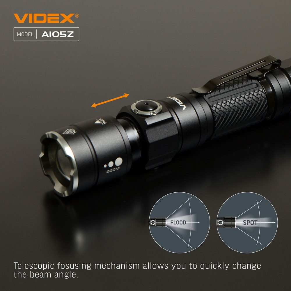 - Latarka VIDEX 10W 1200lm oferuje zasięg 215m i do 83h pracy. Wytrzymała, z wymiennym akumulatorem 2200mAh, ładowaniem USB-C i wskaźnikiem baterii. Lekka, wykonana z aluminium lotniczego.