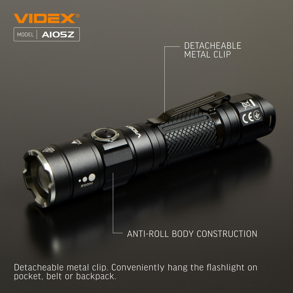 Dzięki wymiennej baterii, użytkownik może szybko i łatwo wymienić akumulator, co zwiększa komfort użytkowania. Latarka VIDEX VLF-A105Z to niezawodny wybór dla każdego, kto potrzebuje przenośnego, wydajnego i trwałego źródła światła w każdych warunkach.