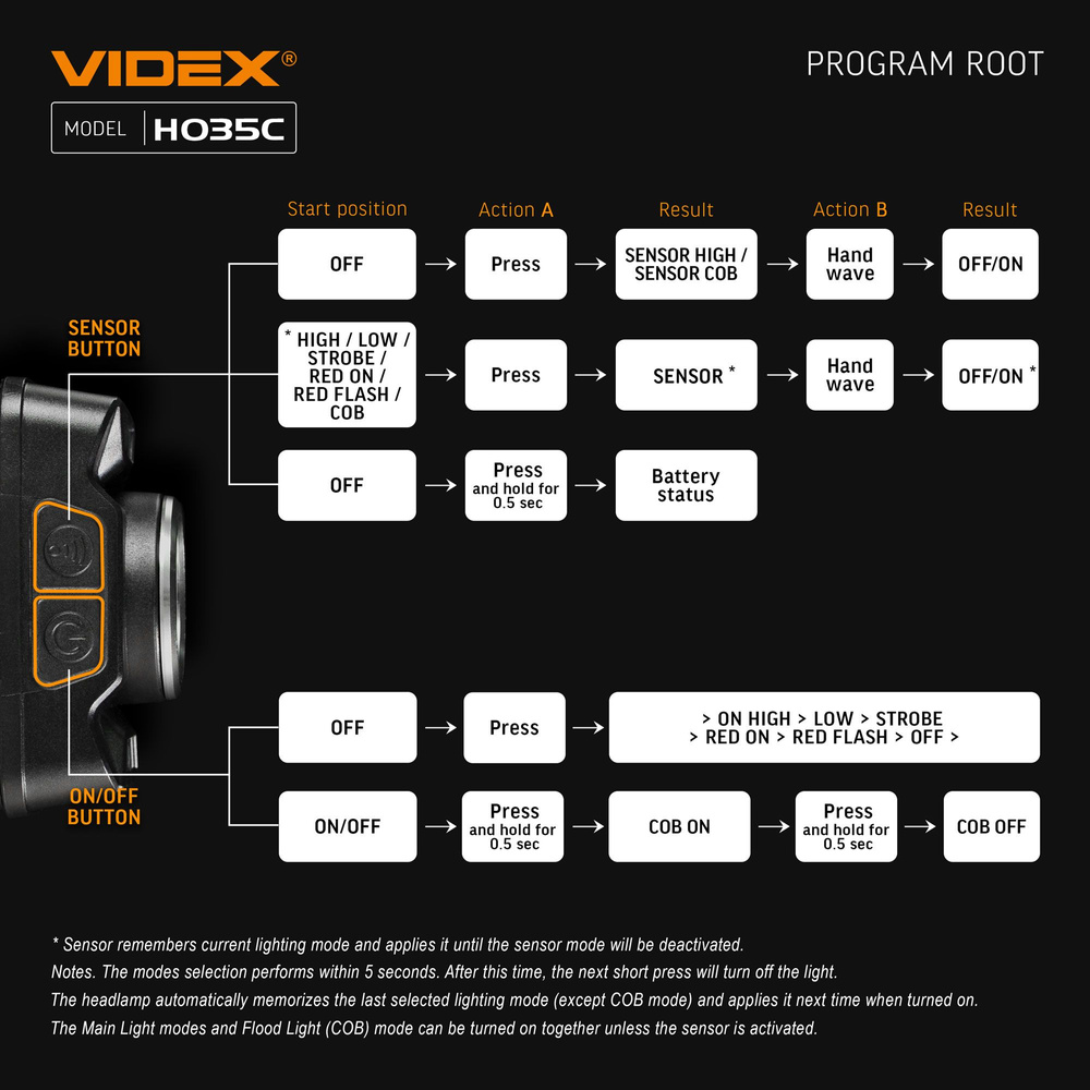- Latarka czołowa Videx 410lm, wodoodporna IP65, 7 trybów, sterowanie gestami, akumulator 1800 mAh (do 23 h pracy) z 4-stopniowym wskaźnikiem. Lekka, ergonomiczna, neutralne światło 5000K – idealna do outdooru i aktywności po zmroku.