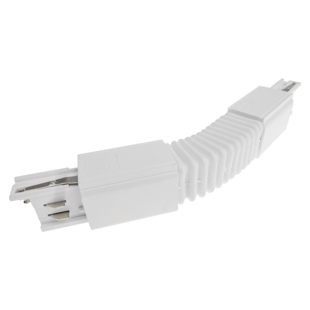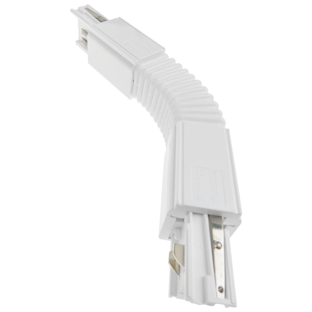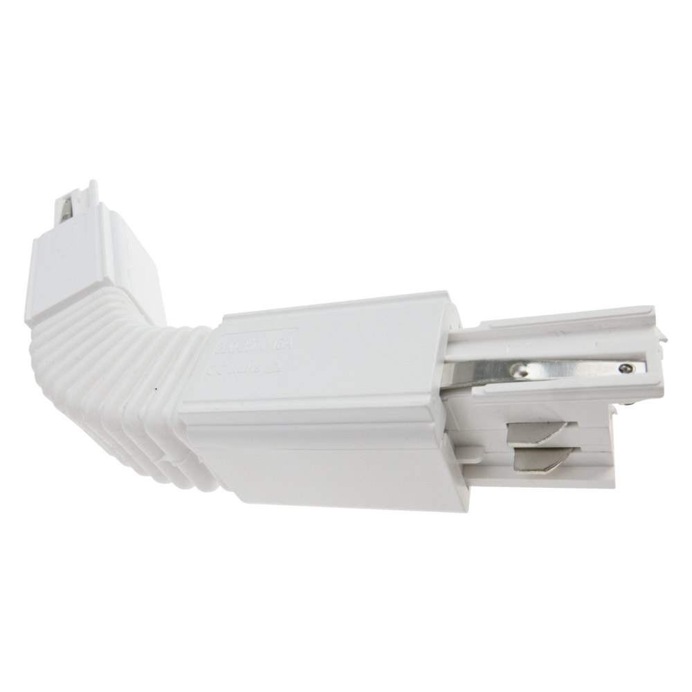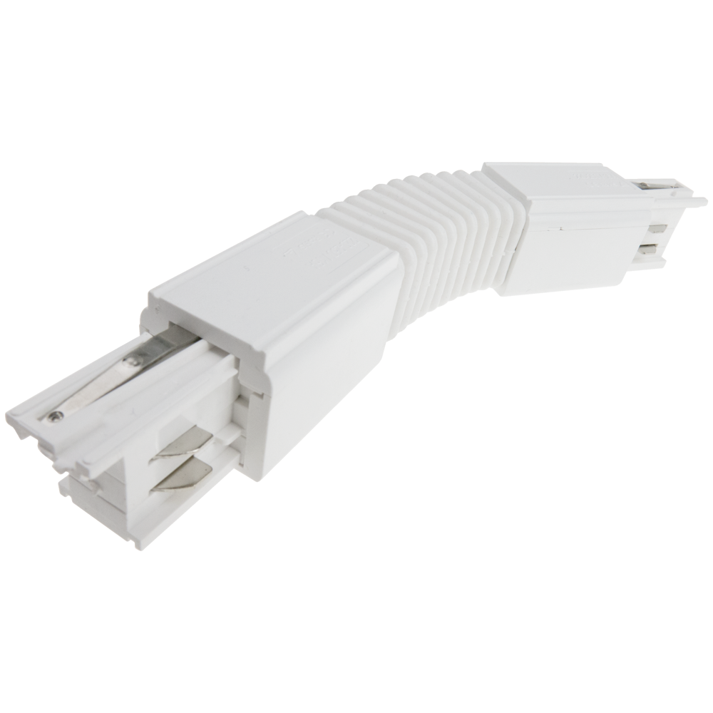 Łącznik elastyczny typu "flexible" w kolorze białym do szynoprzewodu 3-fazowego. Dzięki łącznikom możliwe jest połączenie szynoprzewodów, co umożliwia precyzyjne rozmieszczenie i oświetlenie poszczególnych części pomieszczenia.